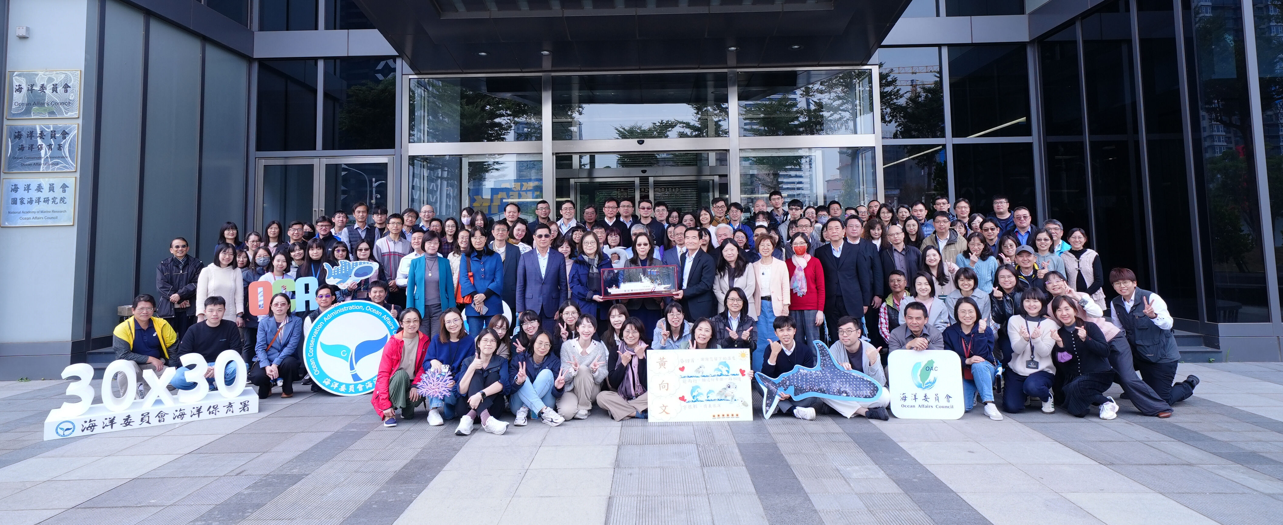 頒贈獎章與歡送活動洋溢著不捨與感謝,同仁回顧與黃向文副主委並肩推動海洋事務的點滴,對其一路以專業與溫度帶領團隊深表感念,管碧玲主委特別致贈琉璃紀念品《好時光》,象徵攜手完成重要歷程。海委會、海巡署、海保署、國海院全體同仁更一同在掛牌成立海委會與海保署的歷史景點前再次合影,為這段共同走過的時光留下珍貴記錄,眾人祝賀黃向文副主委在歸建校園後,必定持續為我國海洋治理與人才培育貢獻心力。