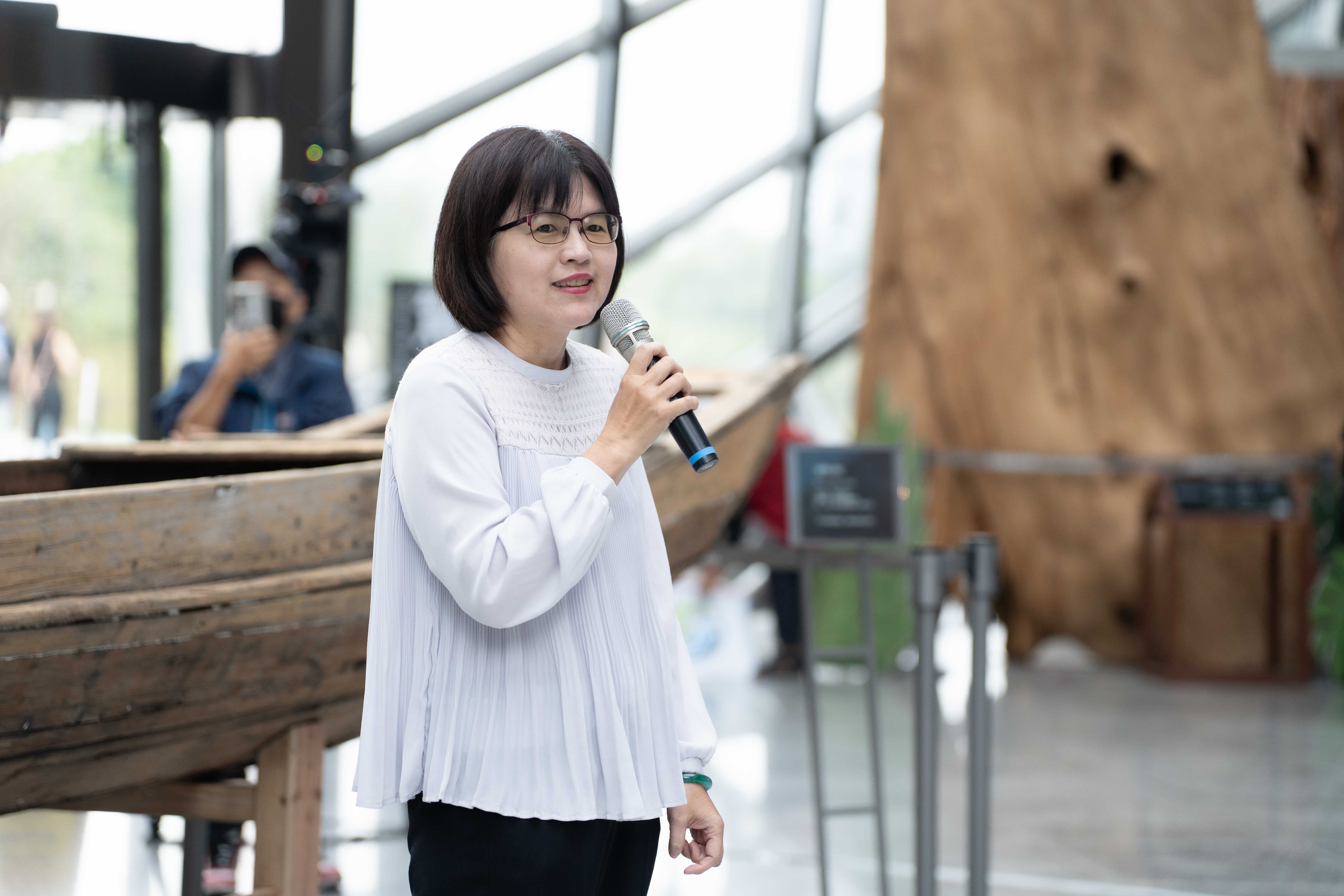 海洋委員會林麗英處長致詞表示,在推動復振航海文化力造舟技藝實踐方面,海洋委員會支持臺灣各地的團隊挖掘耆老的記憶寶庫,從淡水河的舢舨船、八斗子的罾子船、均一學校的南島支架大洋舟,到阿美族莿桐部落、南島社區大學發展協會的阿美族傳統竹筏帆船,乃至蘭嶼雅美(達悟)族拼板舟,每一場的新船下水,都是文化薪傳的里程碑。除了國內造舟技藝傳承之外,國際航行交流工作,也熱絡蓬勃發展,包括今年三立「上船了各位!」實境節目,從花蓮外海划到日本石垣島,宜蘭縣岳明國民中小學與法國的小帆手們進行「攜手國際航向蔚藍」航行活動,從新北淡水漁人碼頭,行經桃園竹圍漁港、臺中梧棲漁港、澎湖馬公漁港、臺南安平港、抵達高雄港,帛琉無私分享號今年航抵臺東、蘭嶼,明年初預計再度航抵臺灣,探索南島海洋文明協會預計2027年航向關島,進行國際交流,這些成果要特別感謝各縣市政府、博物館所、學校、民間團體,和海委會攜手合作共同推動。