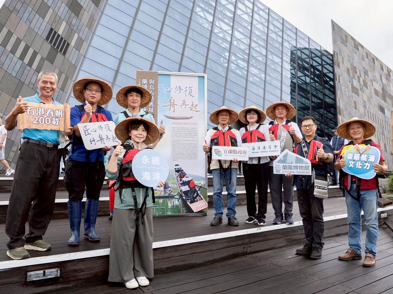 為能重新賦予這2艘獲贈宜蘭傳統木船的新生命,蘭陽博物館組成「舟船共學團」,成員橫跨各界:包括負責研究指導的國立高雄科技大學洪文玲副教授、王治平副教授及淡水河舢舨專家陳明忠先生;針對傳統材料研究的國立屏東科技大學黃俊明榮譽教授、國立宜蘭大學張資正教授;舟船的捐贈者溪和水產簡大新先生;修復匠師楊秋煌先生、楊制航先生;協力運送的宜蘭社大孔明車隊藍浩瑋先生;主持航行訓練的台灣地理永續再生發展協會王俊明總幹事;還有今日以藝術共襄盛舉,為啟航揭幕的人間舞集。