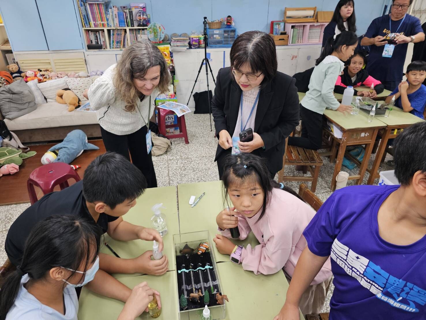 活動同時結合展示解說與闖關體驗,學生們在互動中培養探究能力與環境關懷意識,這樣的教學設計正呼應OSS教材「從實證中學習」的教育理念,讓海洋知識不再抽象,而是能觸摸、能感受的真實學習。岳明國中小師生表示,透過OSS課程的引入與教師引導,學生對海洋議題的理解大幅提升,尤其在討論人與海洋關係時,能自發提出觀點,展現學習主動性。