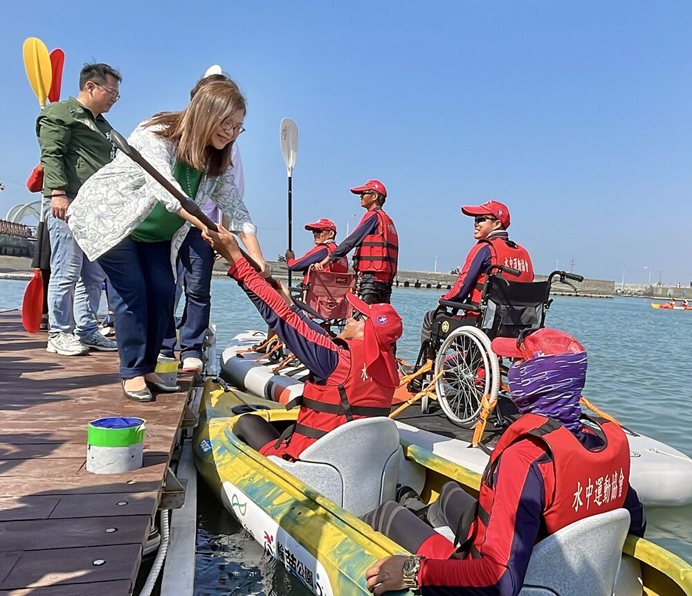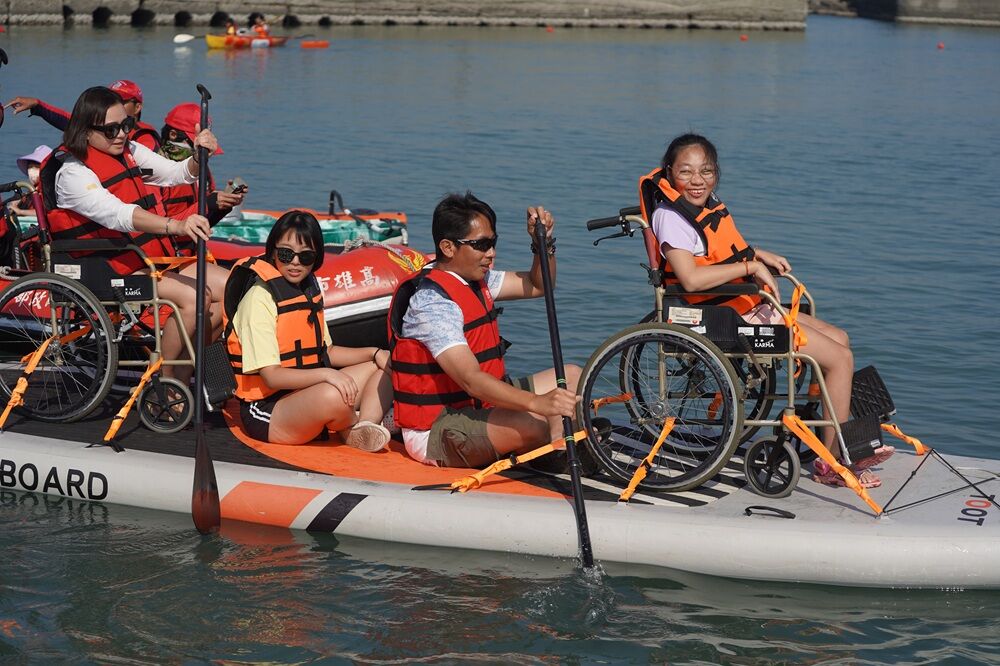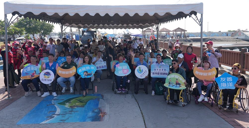 海洋委員會與水中運動協會今(16)日上午於高雄彌陀漁港海岸光廊舉辦「勇敢逐浪、無礙前行」無障礙親海體驗活動,由海洋委員會管碧玲主任委員親自主持,並於全臺首座無障礙入水輔助平台進行遞槳啟航儀式,象徵海委會攜手身心障礙夥伴共同擁抱海洋、推動常態性無障礙海域遊憩場域的決心。