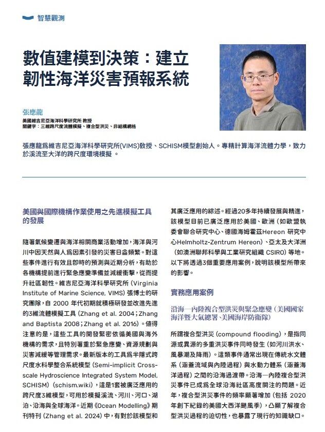 從自主船舶法規挑戰、NOAA 採用的 SCHISM 災害預警模型,到國際專家對海洋科學投資的倡議,展現科技如何轉化為治理能力,並串聯臺灣與國際海洋治理趨勢。