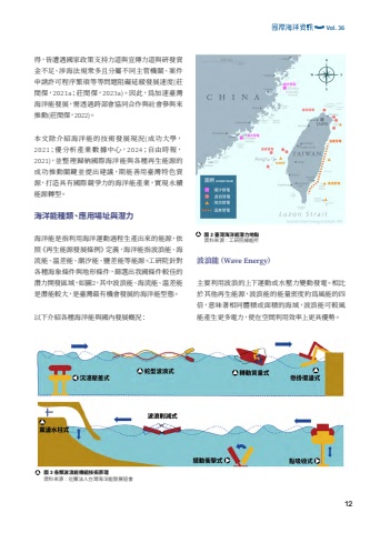 %u5f97%uff0c%u7686%u906d%u9047%u570b%u5bb6%u653f%u7b56%u652f%u6301%u529b%u9053%u8207%u5ba3%u50b3%u529b%u9053%u8207%u7814%u767c%u8cc7%u91d1%u4e0d%u8db3%u3001%u6d89%u6d77%u6cd5%u898f%u773e%u591a%u4e14%u5206%u5c6c%u4e0d%u540c%u4e3b%u7ba1%u6a5f%u95dc%u3001%u6848%u4ef6%u7533%u8acb%u8a31%u53ef%u7a0b%u5e8f%u7e41%u7463%u7b49%u7b49%u554f%u984c%u963b%u7919%u5ef6%u7de9%u767c%u5c55%u901f%u5ea6(%u838a%u9594%u5091%uff0c2021a%uff1b%u838a%u9594%u5091%uff0c2023a)%u3002%u56e0%u6b64%uff0c%u70ba%u52a0%u901f%u81fa%u7063%u6d77%u6d0b%u80fd%u767c%u5c55%uff0c%u9700%u900f%u904e%u8de8%u90e8%u6703%u5354%u540c%u5408%u4f5c%u8207%u793e%u6703%u53c3%u8207%u4f86%u63a8%u52d5(%u838a%u9594%u5091%uff0c2022)%u3002%u672c%u6587%u9664%u4ecb%u7d39%u6d77%u6d0b%u80fd%u7684%u6280%u8853%u767c%u5c55%u73fe%u6cc1(%u6210%u529f%u5927%u5b78%uff0c2021%uff1b%u512a%u5206%u6790%u7522%u696d%u6578%u64da%u4e2d%u5fc3%uff0c2024%uff1b%u81ea%u7531%u6642%u5831%uff0c2021)%uff0c%u4e26%u6574%u7406%u6b78%u7d0d%u570b%u969b%u6d77%u6d0b%u80fd%u8207%u5404%u7a2e%u518d%u751f%u80fd%u6e90%u7684%u6210%u529f%u63a8%u52d5%u95dc%u9375%u4e26%u63d0%u51fa%u5efa%u8b70%uff0c%u671f%u80fd%u5584%u7528%u81fa%u7063%u7279%u8272%u8cc7%u6e90%uff0c%u6253%u9020%u5177%u6709%u570b%u969b%u7af6%u722d%u529b%u7684%u6d77%u6d0b%u80fd%u7522%u696d%uff0c%u5be6%u73fe%u6c38%u7e8c%u80fd%u6e90%u8f49%u578b%u3002%u6d77%u6d0b%u80fd%u7a2e%u985e%u3001%u61c9%u7528%u5834%u5740%u8207%u6f5b%u529b%u6d77%u6d0b%u80fd%u662f%u6307%u5229%u7528%u6d77%u6d0b%u904b%u52d5%u904e%u7a0b%u751f%u7522%u51fa%u4f86%u7684%u80fd%u6e90%uff0c%u4f9d%u7167%u300a%u518d%u751f%u80fd%u6e90%u767c%u5c55%u689d%u4f8b%u300b%u5b9a%u7fa9%uff0c%u6d77%u6d0b%u80fd%u6307%u6ce2%u6d6a%u80fd%u3001%u6d77%u6d41%u80fd%u3001%u6eab%u5dee%u80fd%u3001%u6f6e%u6c50%u80fd%u3001%u9e7d%u5dee%u80fd%u7b49%u80fd%u6e90%u3002%u5de5%u7814%u9662%u91dd%u5c0d%u5404%u7a2e%u6d77%u8c61%u689d%u4ef6%u8207%u5730%u5f62%u689d%u4ef6%uff0c%u7be9%u9078%u51fa%u6211%u570b%u689d%u4ef6%u8f03%u4f73%u7684%u6f5b%u529b%u958b%u767c%u5340%u57df%uff0c%u5982%u57162%uff0c%u5176%u4e2d%u6ce2%u6d6a%u80fd%u3001%u6d77%u6d41%u80fd%u3001%u6eab%u5dee%u80fd%u662f%u6f5b%u80fd%u8f03%u5927%uff0c%u662f%u81fa%u7063%u6700%u6709%u6a5f%u6703%u767c%u5c55%u7684%u6d77%u6d0b%u80fd%u578b%u614b%u3002%u4ee5%u4e0b%u4ecb%u7d39%u5404%u7a2e%u6d77%u6d0b%u80fd%u8207%u570b%u5167%u767c%u5c55%u6982%u6cc1%uff1a%u6ce2%u6d6a%u80fd%uff08Wave Energy%uff09%u4e3b%u8981%u5229%u7528%u6ce2%u6d6a%u7684%u4e0a%u4e0b%u904b%u52d5%u6216%u6c34%u58d3%u529b%u8b8a%u52d5%u767c%u96fb%u3002%u76f8%u6bd4%u65bc%u5176%u4ed6%u518d%u751f%u80fd%u6e90%uff0c%u6ce2%u6d6a%u80fd%u7684%u80fd%u91cf%u5bc6%u5ea6%u7d04%u70ba%u98a8%u80fd%u7684%u56db%u500d%uff0c%u610f%u5473%u8457%u76f8%u540c%u9ad4%u7a4d%u6216%u9762%u7a4d%u7684%u6d77%u57df%uff0c%u6ce2%u6d6a%u80fd%u53ef%u8f03%u98a8%u80fd%u7522%u751f%u66f4%u591a%u96fb%u529b%uff0c%u4f7f%u5728%u7a7a%u9593%u5229%u7528%u6548%u7387%u4e0a%u66f4%u5177%u512a%u52e2%u3002%u5716 2 %u81fa%u7063%u6d77%u6d0b%u80fd%u6f5b%u529b%u5730%u9ede%u8cc7%u6599%u4f86%u6e90%uff1a%u5de5%u7814%u9662%u7da0%u80fd%u6240%u5716 3 %u5404%u985e%u6ce2%u6d6a%u80fd%u6a5f%u7d44%u6280%u8853%u539f%u7406%u8cc7%u6599%u4f86%u6e90%uff1a%u793e%u5718%u6cd5%u4eba%u53f0%u7063%u6d77%u6d0b%u80fd%u767c%u5c55%u5354%u6703Vol. 3612