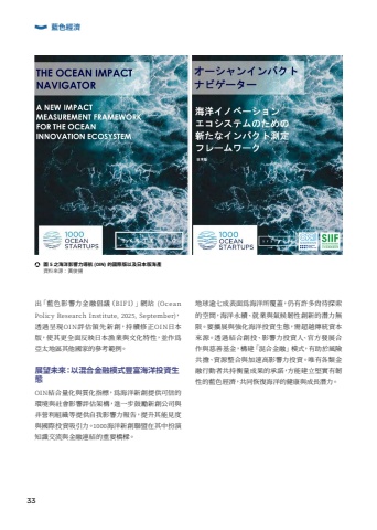 %u51fa%u300c%u85cd%u8272%u5f71%u97ff%u529b%u91d1%u878d%u5021%u8b70%uff08BIFI%uff09%u300d%u7db2%u7ad9 (Ocean Policy Research Institute, 2025, September)%uff0c%u900f%u904e%u5448%u73feOIN%u8a55%u4f30%u9818%u5148%u65b0%u5275%uff0c%u6301%u7e8c%u4fee%u6b63OIN%u65e5%u672c%u7248%uff0c%u4f7f%u5176%u66f4%u5168%u9762%u53cd%u6620%u65e5%u672c%u6f01%u696d%u8207%u6587%u5316%u7279%u6027%uff0c%u4e26%u4f5c%u70ba%u4e9e%u592a%u5730%u5340%u5176%u4ed6%u570b%u5bb6%u7684%u53c3%u8003%u7bc4%u4f8b%u3002 %u5c55%u671b%u672a%u4f86%uff1a%u4ee5%u6df7%u5408%u91d1%u878d%u6a21%u5f0f%u8c50%u5bcc%u6d77%u6d0b%u6295%u8cc7%u751f%u614bOIN%u7d50%u5408%u91cf%u5316%u8207%u8cea%u5316%u6307%u6a19%uff0c%u70ba%u6d77%u6d0b%u65b0%u5275%u63d0%u4f9b%u53ef%u4fe1%u7684%u74b0%u5883%u8207%u793e%u6703%u5f71%u97ff%u8a55%u4f30%u67b6%u69cb%uff0c%u9032%u4e00%u6b65%u9f13%u52f5%u65b0%u5275%u516c%u53f8%u8207%u975e%u71df%u5229%u7d44%u7e54%u7b49%u63d0%u4f9b%u81ea%u6211%u5f71%u97ff%u529b%u5831%u543f%uff0c%u63d0%u5347%u5176%u80fd%u898b%u5ea6%u8207%u570b%u969b%u6295%u8cc7%u5438%u5f15%u529b%u30021000%u6d77%u6d0b%u65b0%u5275%u806f%u76df%u5728%u5176%u4e2d%u626e%u6f14%u77e5%u8b58%u4ea4%u6d41%u8207%u91d1%u878d%u9023%u7d50%u7684%u91cd%u8981%u6a4b%u6a11%u3002%u5730%u7403%u903e%u4e03%u6210%u8868%u9762%u70ba%u6d77%u6d0b%u6240%u8986%u84cb%uff0c%u4ecd%u6709%u8a31%u591a%u5c19%u5f85%u63a2%u7d22%u7684%u7a7a%u9593%uff0c%u6d77%u6d0b%u6c38%u7e8c%u3001%u5c31%u696d%u8207%u6c23%u5019%u97cc%u6027%u5275%u65b0%u7684%u6f5b%u529b%u7121%u9650%u3002%u8981%u64f4%u5c55%u8207%u5f37%u5316%u6d77%u6d0b%u6295%u8cc7%u751f%u614b%uff0c%u9700%u8d85%u8d8a%u50b3%u7d71%u8cc7%u672c%u4f86%u6e90%u3002%u900f%u904e%u7d50%u5408%u5275%u6295%u3001%u5f71%u97ff%u529b%u6295%u8cc7%u4eba%u3001%u5b98%u65b9%u767c%u5c55%u5408%u4f5c%u8207%u6148%u5584%u57fa%u91d1%uff0c%u69cb%u5efa%u300c%u6df7%u5408%u91d1%u878d%u300d%u6a21%u5f0f%uff0c%u6709%u52a9%u65bc%u98a8%u96aa%u5171%u64d4%u3001%u8cc7%u6e90%u6574%u5408%u8207%u52a0%u901f%u9ad8%u5f71%u97ff%u529b%u6295%u8cc7%u3002%u552f%u6709%u5404%u985e%u91d1%u878d%u884c%u52d5%u8005%u5171%u6301%u8861%u91cf%u6210%u679c%u7684%u627f%u8afe%uff0c%u65b9%u80fd%u5efa%u7acb%u5805%u5be6%u6709%u97cc%u6027%u7684%u85cd%u8272%u7d93%u6fdf%uff0c%u5171%u540c%u6062%u5fa9%u6d77%u6d0b%u7684%u5065%u5eb7%u8207%u6210%u9577%u6f5b%u529b%u3002%u85cd%u8272%u7d93%u6fdf%u5716 5 %u4e4b%u6d77%u6d0b%u5f71%u97ff%u529b%u5c0e%u822a (OIN) %u7684%u570b%u969b%u7248%u4ee5%u53ca%u65e5%u672c%u7248%u6d77%u7522%u8cc7%u6599%u4f86%u6e90%uff1a%u9ec3%u4fca%u63da33