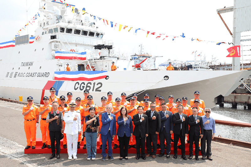 The Coast Guard Administration (CGA) Fleet Branch held a joint ceremony at Jong Shyn Shipbuilding Company for the delivery of the 10th 600-ton patrol vessel, CG612 Suao, and the naming and launching of the 11th vessel, CG613. The event, presided over by Ocean Affairs Council Minister Kuan Bi-ling, brought together distinguished guests to witness the latest progress of the “Coast Guard